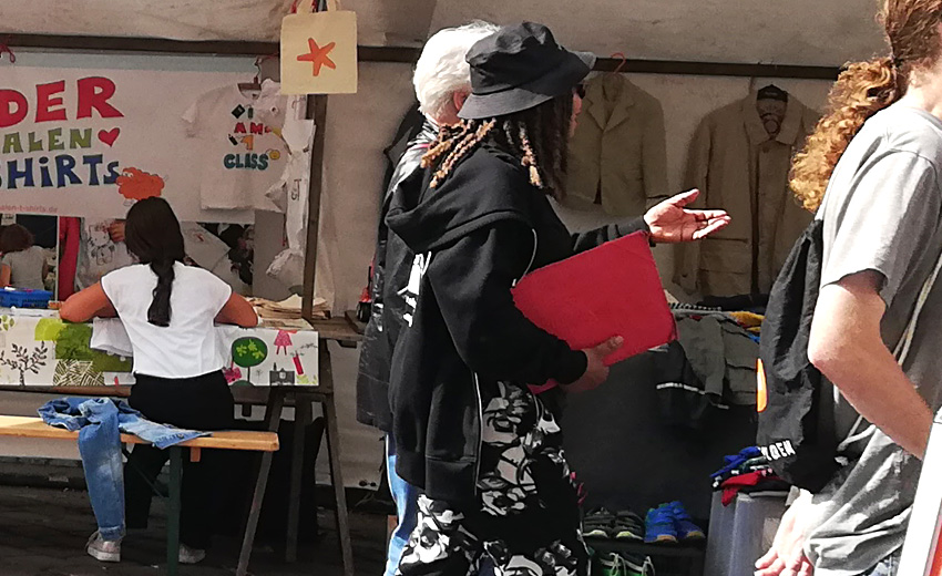 Mein besonderer Dank geht an Marie Hoepfner (Vorsitzende des Vereins mog61 Miteinander ohne Grenzen e.V.) für ihr tolles Engagement und ihre herzliche Art! „Kinder bemalen T-Shirts“ kommt nächstes Jahr sehr gerne wieder! 🙂